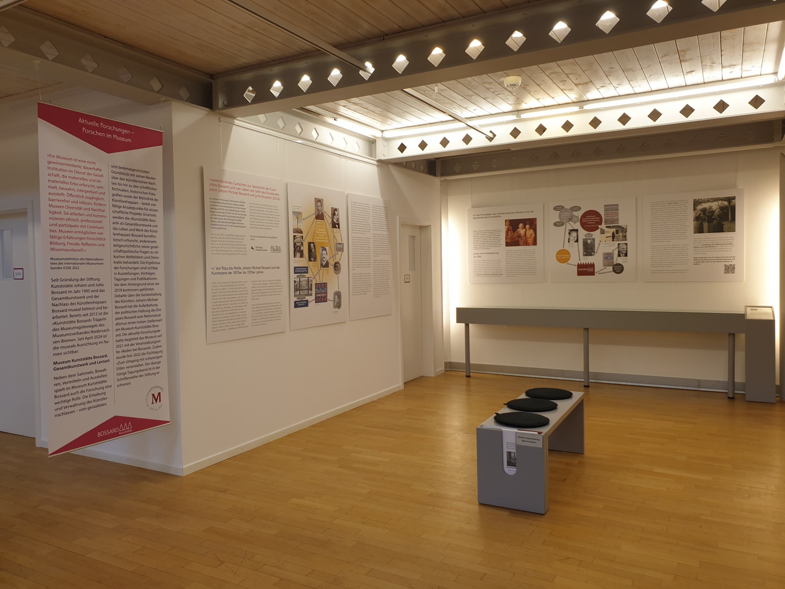 Ein weiterer und ergänzender Ausstellungsteil stellt die externen Forschungen des Historikers PD Dr. Tobias Hof vom Institut für Zeitgeschichte (IfZ), München–Berlin vor. Einerseits untersuchte Dr. Hof das Verhältnis von Johann Michael und Jutta Bossard zum Nationalsozialismus, andererseits zeichnete er erstmals das Privatleben des Künstlerehepaars und die Geschichte der »Kunststätte Bossard« nach.