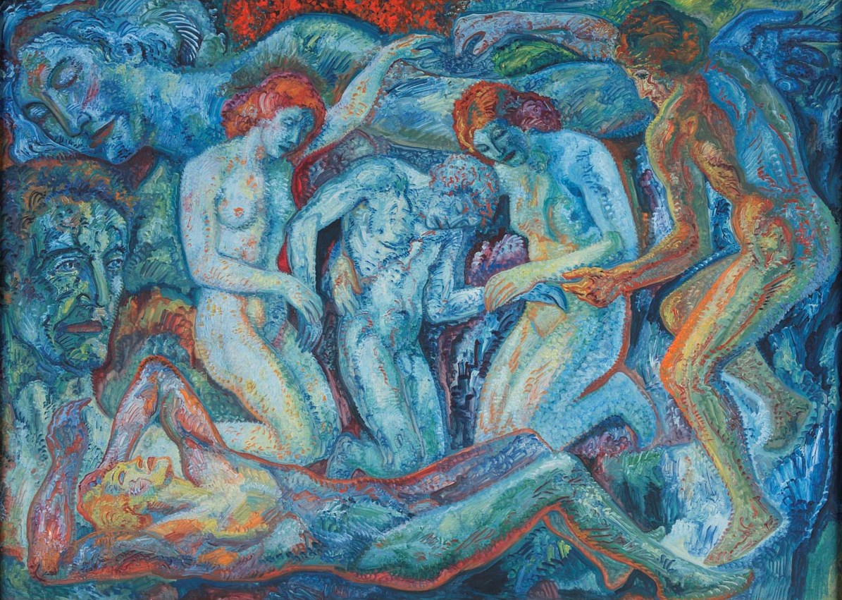 (3) Johann Bossard: Idealbildnis und fratzenhafte Gesichter, 1916